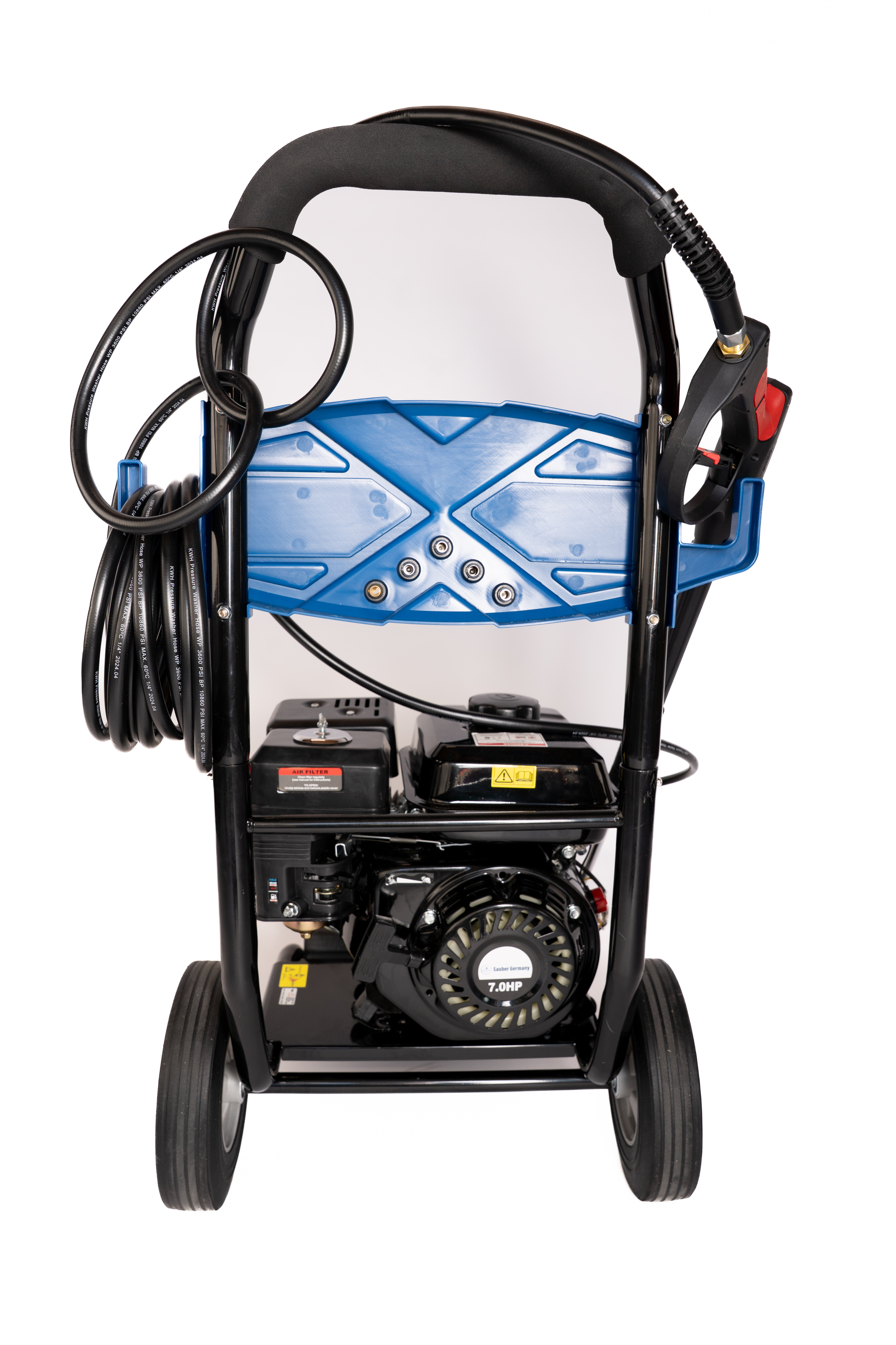 Dankzij de robuuste constructie en hoogwaardige componenten is deze hogedrukreiniger ontworpen om te presteren onder zware omstandigheden. De Swedic Outdoor-lijn biedt extra bescherming en gebruiksgemak met schokabsorberende bumpers aan de voor- en achterkant, een parkeerrem, een uitlaatbeschermkap en grote, massief rubberen wielen voor optimale stabiliteit en mobiliteit.