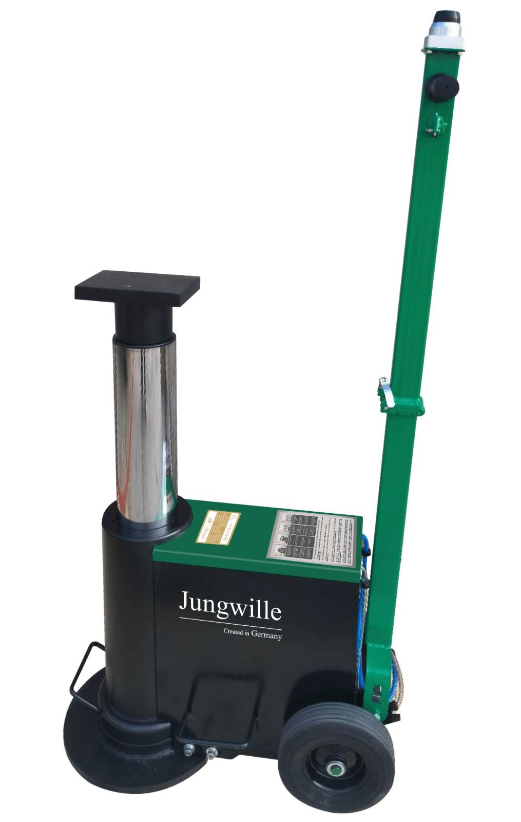 De Jungwille 80T pneumatisch-hydraulische werkplaatskrik is een krachtige en robuuste hefoplossing, speciaal ontworpen voor het optillen van zware voertuigen en machines. Met een indrukwekkende hefcapaciteit van 80 ton en een maximale hefhoogte van 950 mm, is deze krik perfect voor professioneel gebruik in werkplaatsen en garages.